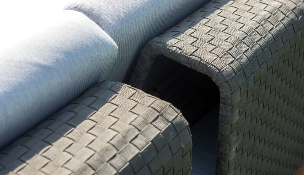 Outdoor sofa LB018.Indicative dimension 1,80x1,20. Manufactured with a frame made of iroko and a back with a metal frame covered with knitted synthetic material. Seat with a seat with a rubber restoration rubber covered with a waterproof fabric with UVA sun protection..Possibility of choice of dimensions, fabrics such as waterproof, alligator and choice of wood such as beech, iroko, etc. Available for indoor and outdoor use on request. Its modern lines create warm and elegant spaces. The sofa has a 5-year quality guarantee.