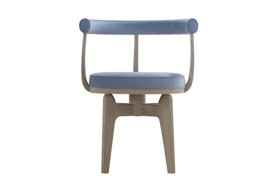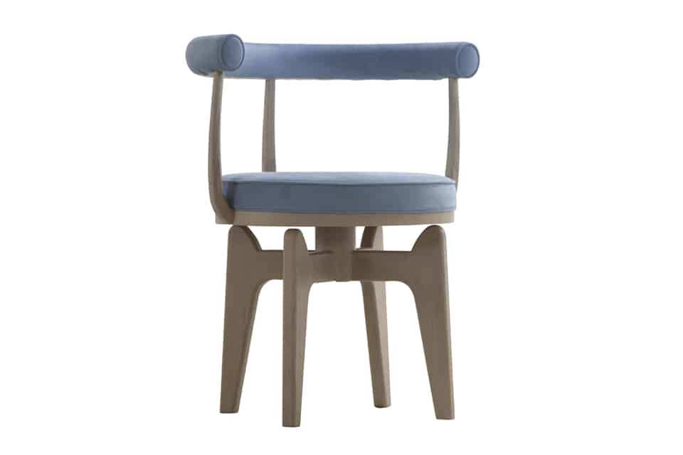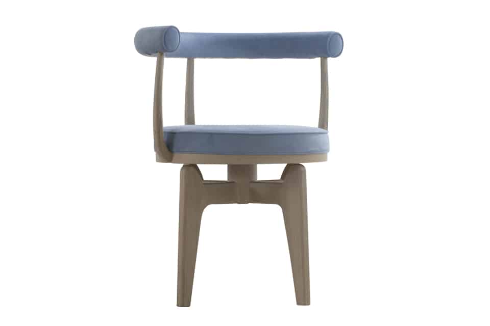 Swivel chair KA096. Made of solid wood and fabric upholstery. Possibility of choice of wood (such as despotok, oak, iroko etc.) and fabrics (waterproof, alexia etc.) Available for indoor and outdoor use on request. Designed in minimal, simple lines, it serves the aesthetic and functional needs of your space. The chair has a 5-year quality guarantee. Free transport within Attica.