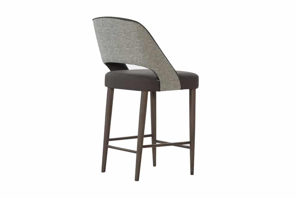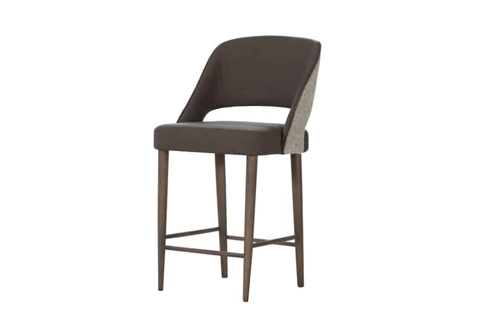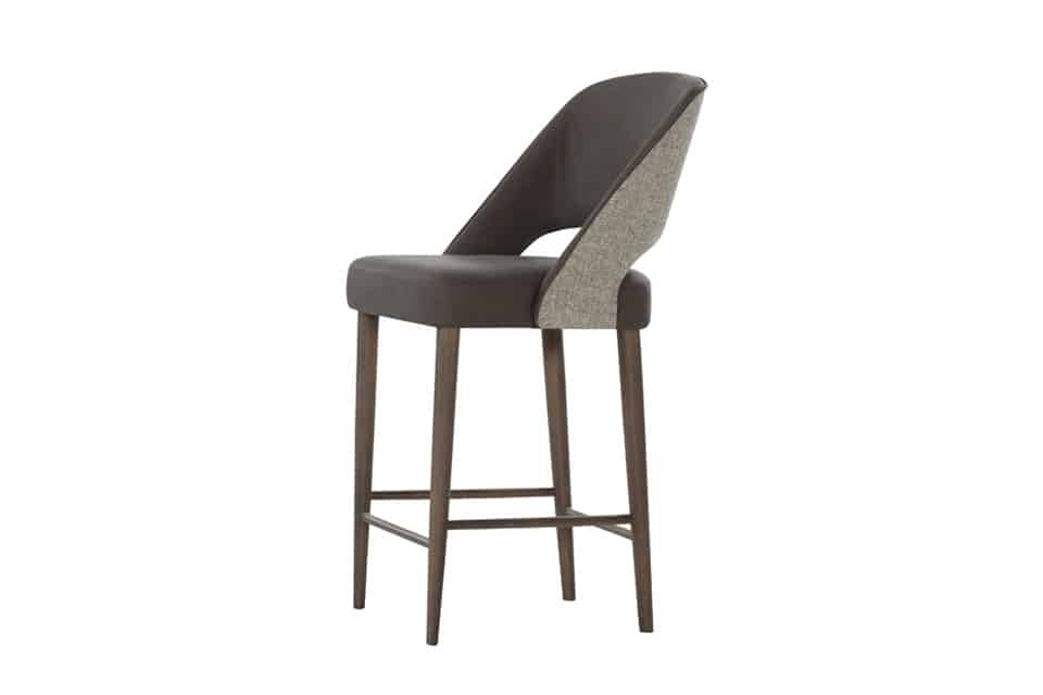 High stool Q3035. Made of solid despotaki wood and lined with leatherette and fabric. Choice of wood (such as oak, walnut, iroko, etc.) and fabrics (such as waterproof, alakia, etc.). Available for indoor and outdoor use on request. Its special design serves the aesthetic and functional needs of your space in the best possible way. The stool has a 5-year quality guarantee. Free transport and assembly within Attica.