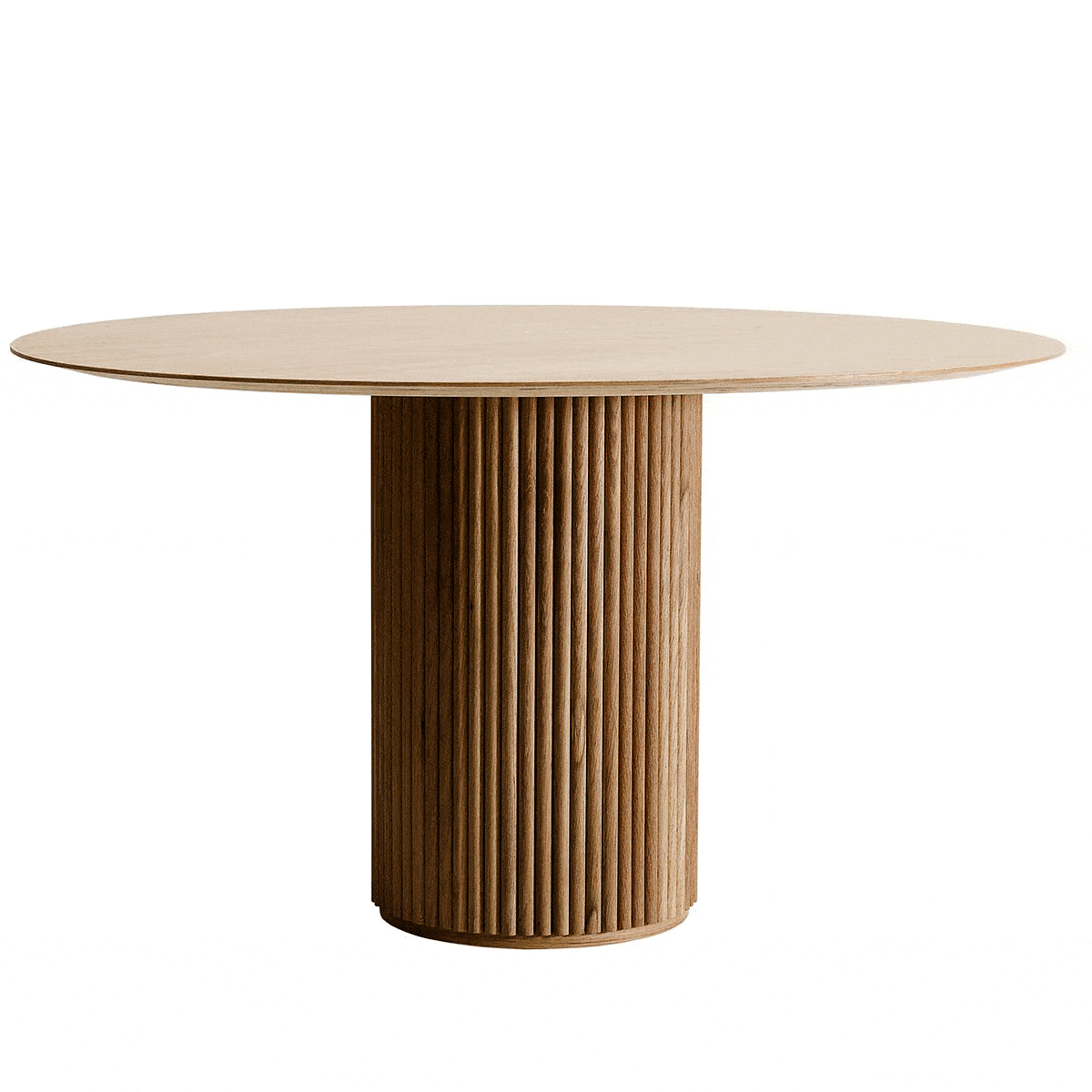 Dining table T45 with indicative dimension Φ140. Rotunda Table made with base and top made of solid wood. Possibility of choice of dimensions, wood (despotaki, oak, walnut, iroko etc.) materials (compact, marble, ceramic etc.) and varnishes (lacquer, cement mortar etc.) Available for indoor and outdoor use upon request. Designed in minimal, simple lines, it serves the aesthetic and functional needs of your space.