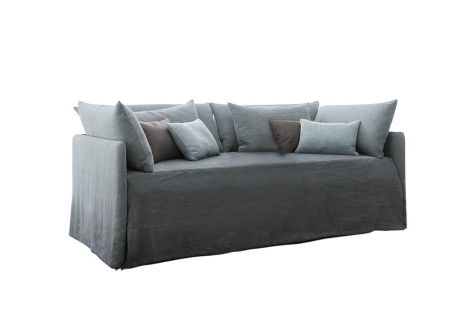 Sofa Bed L3516 with indicative dimension 210x90. It has an Italian sliding mechanism for bed and two mattresses. Manufactured with a frame made of burnt beech wood, seats with rubber return and K1 fabric. Easily removable fabrics. Sofa bed with fabric upholstery. Possibility to choose dimensions and fabrics such as waterproof, alexia, etc.