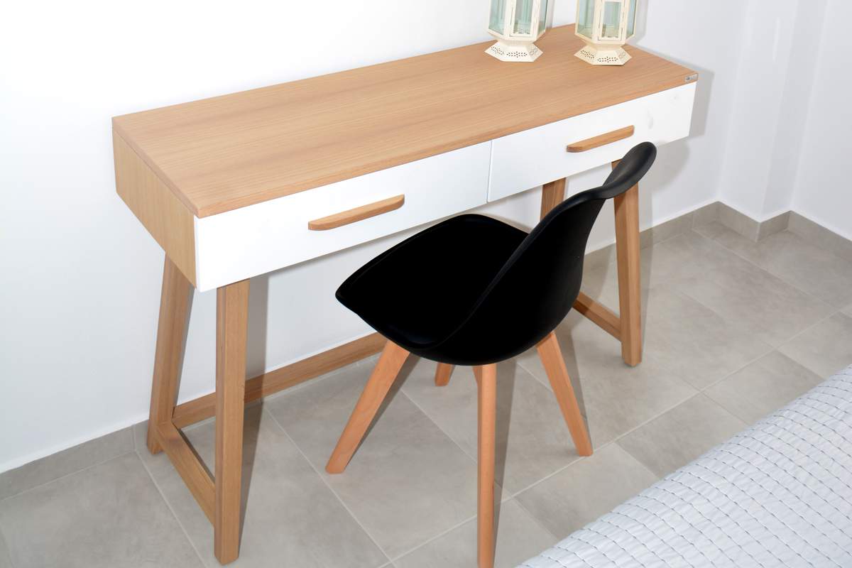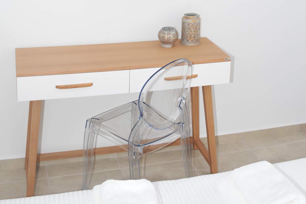 Η διακόσμηση των δωματίων είναι μοντέρνα και λιτή. Βασικό στοιχείο για την επίπλωση τους, που ανέλαβε η GKMOBILI, είναι το ξύλο σε σχετικά ανοιχτές αποχρώσεις.