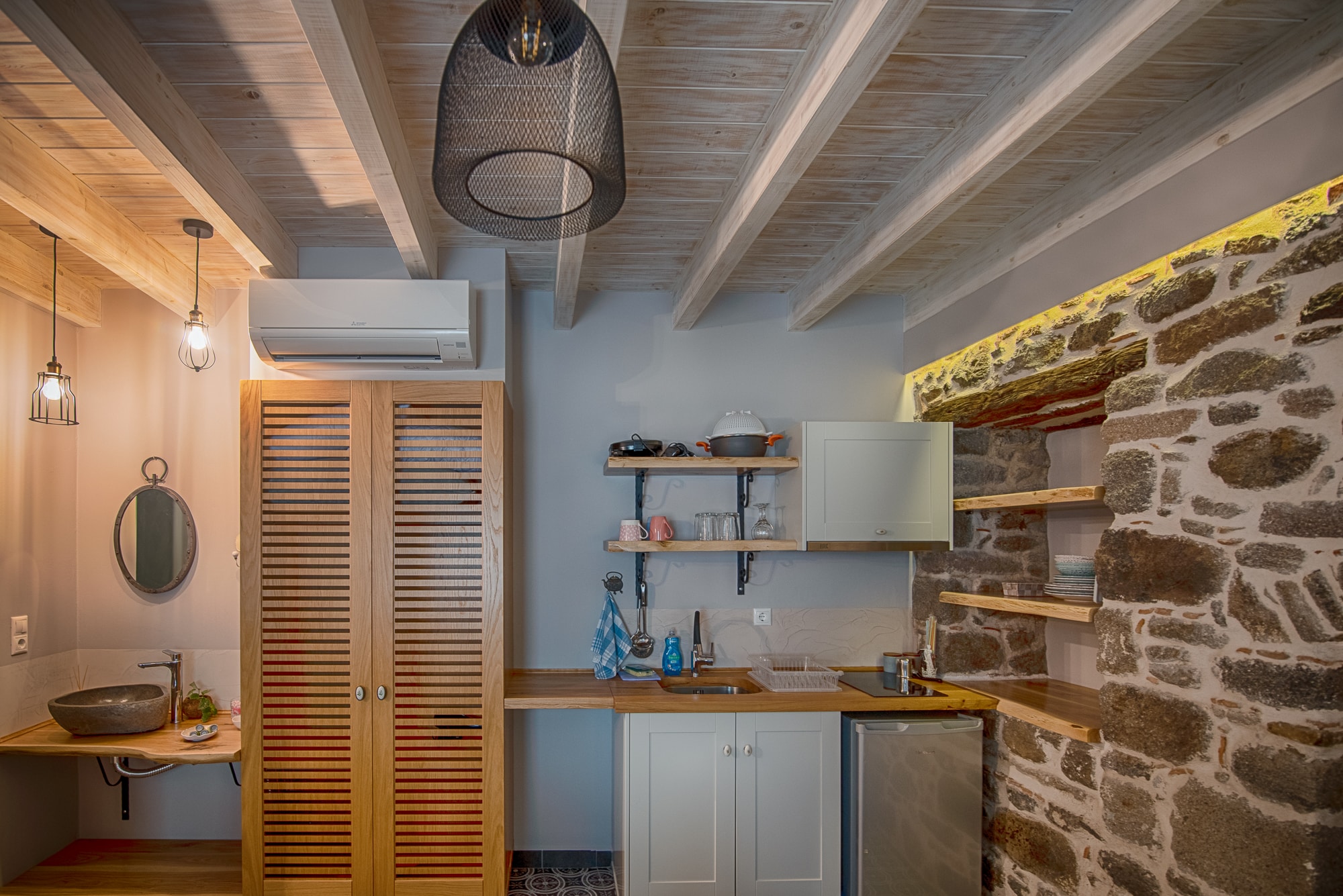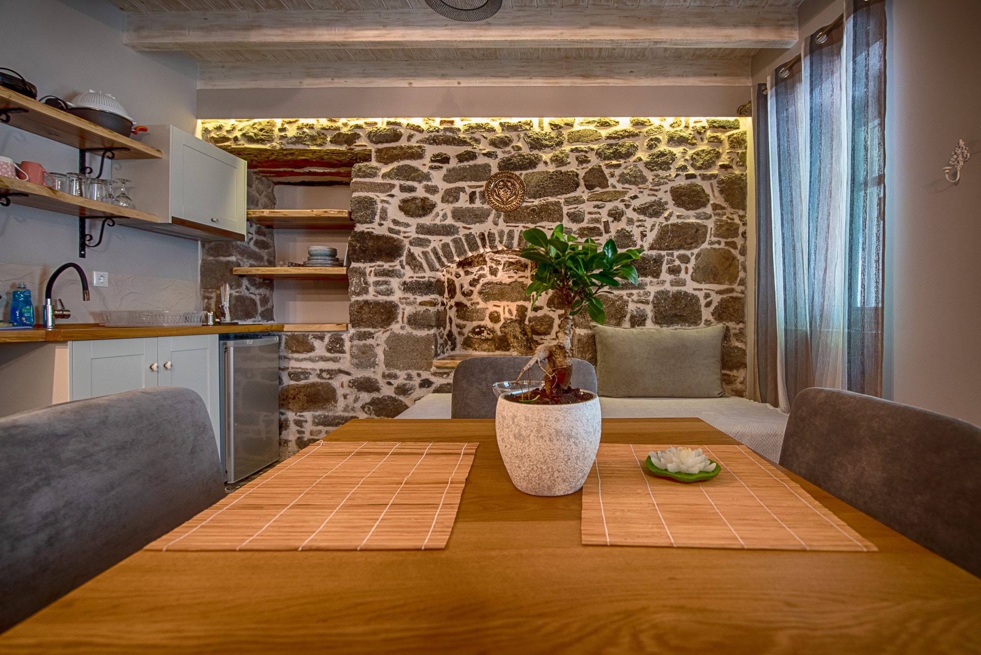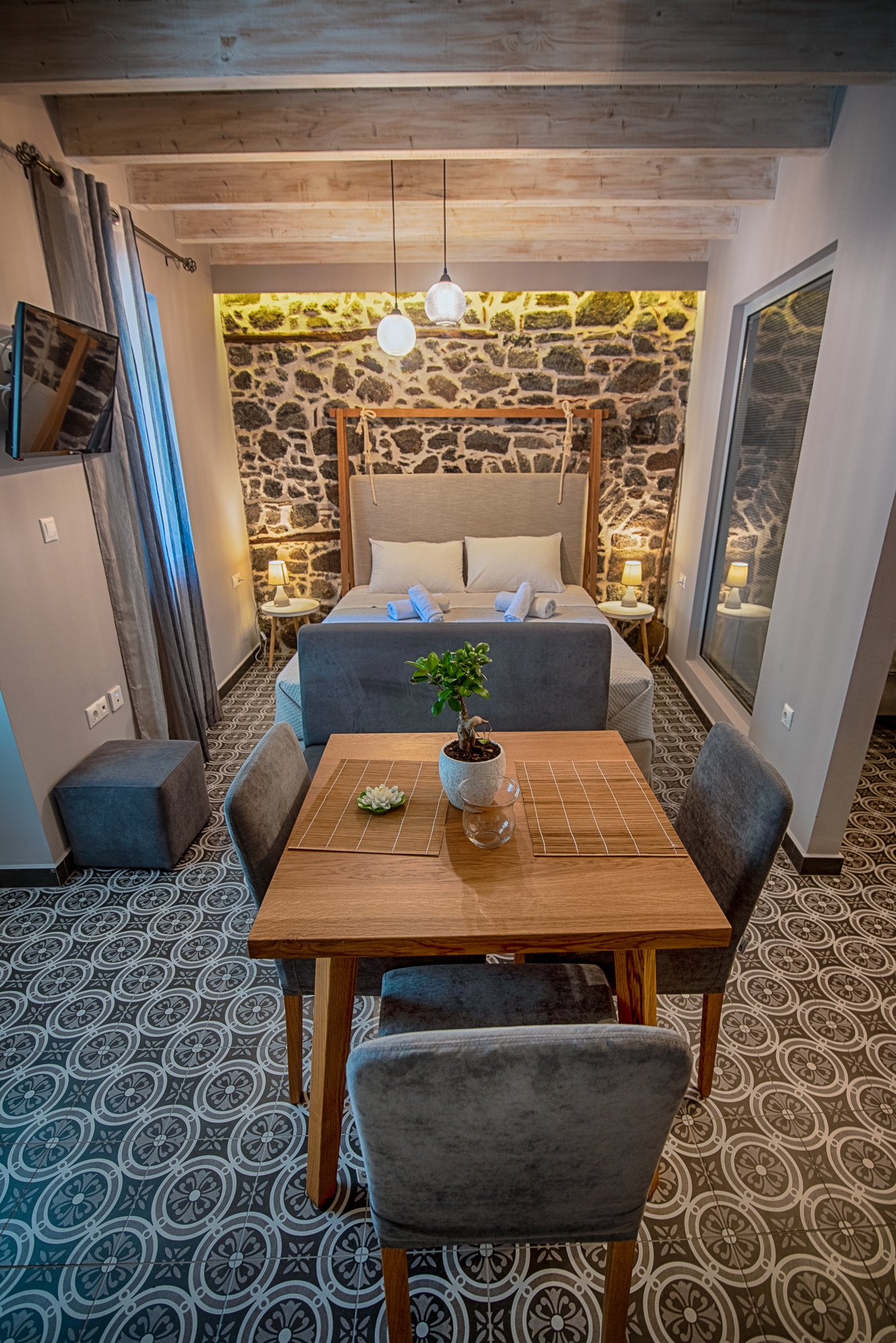 Οι εσωτερικοί χώροι είναι διακοσμημένοι με βάση την πέτρα και το ξύλο. Έχουν προσεγμένη επίπλωση λευκού, γκρι και καφέ χρώματος επιλεγμένη από την εταιρεία μας.