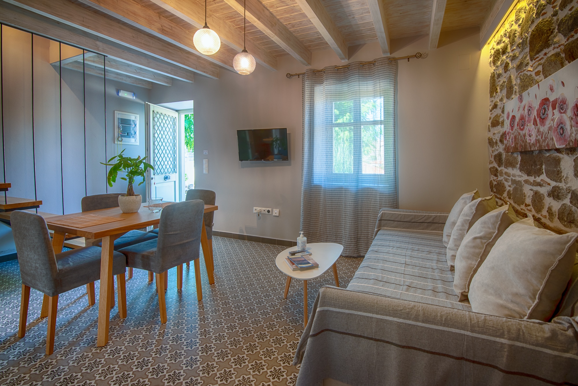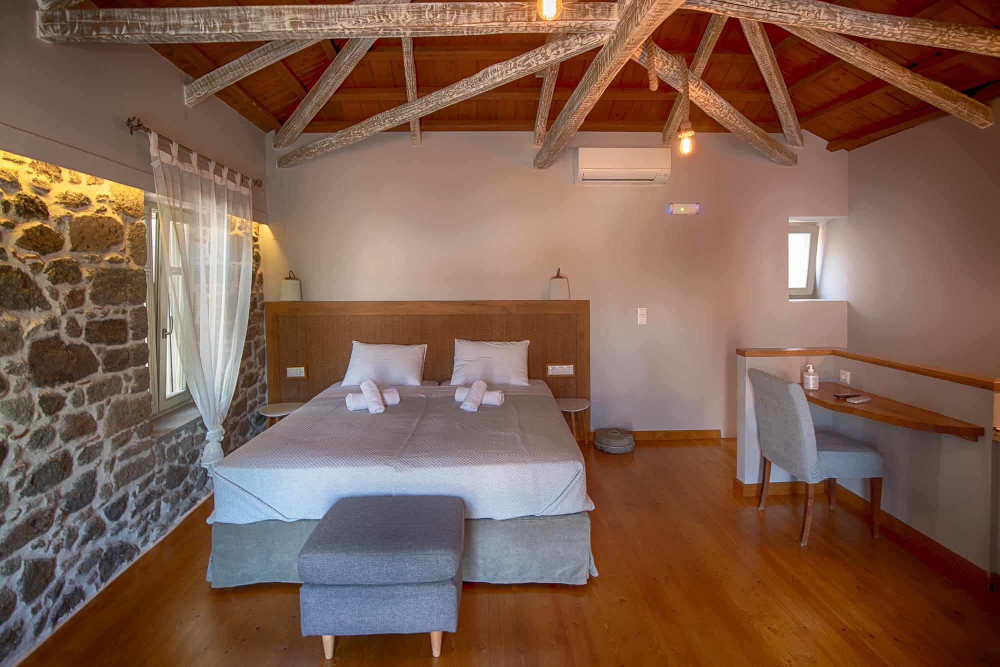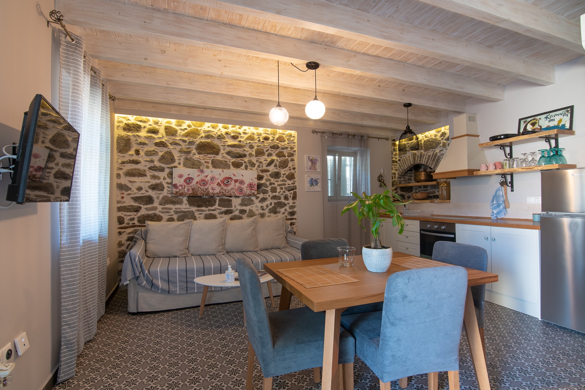 Οι εσωτερικοί χώροι είναι διακοσμημένοι με βάση την πέτρα και το ξύλο. Έχουν προσεγμένη επίπλωση λευκού, γκρι και καφέ χρώματος επιλεγμένη από την εταιρεία μας.