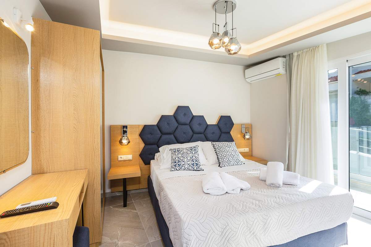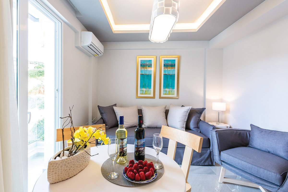 Αποτελείται τόσο από στούντιο όσο και από σουίτες και έχει μοντέρνο σχεδιασμό και επίπλωση. Η εταιρεία μας επέλεξε έπιπλα σε μπεζ και γκρι χρώμα που προσδίδουν μεγάλη αίσθηση ηρεμίας στο χώρο.