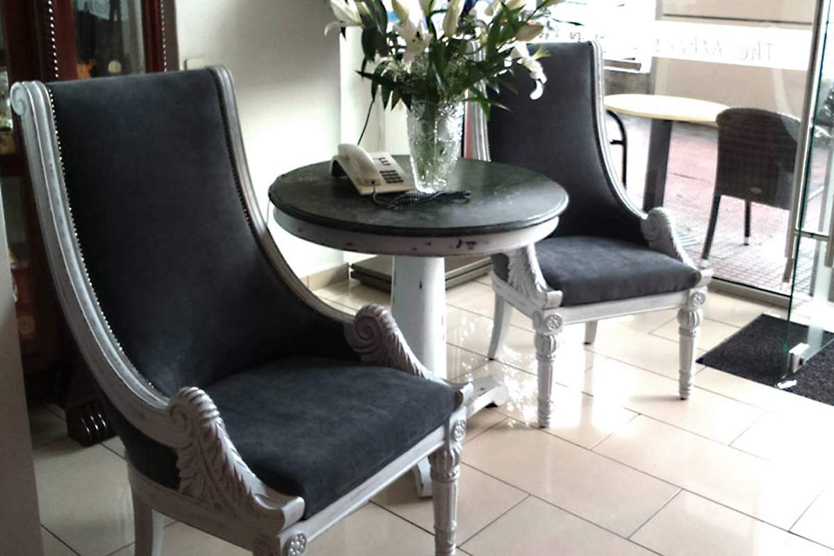 Έχει χώρους διακοσμημένους με ξύλινα έπιπλα καρυδιάς νεοκλασικού στυλ ενώ ειδικά οι ψυχρών αποχρώσεων πολυθρόνες , κερδίζουν την προσοχή.