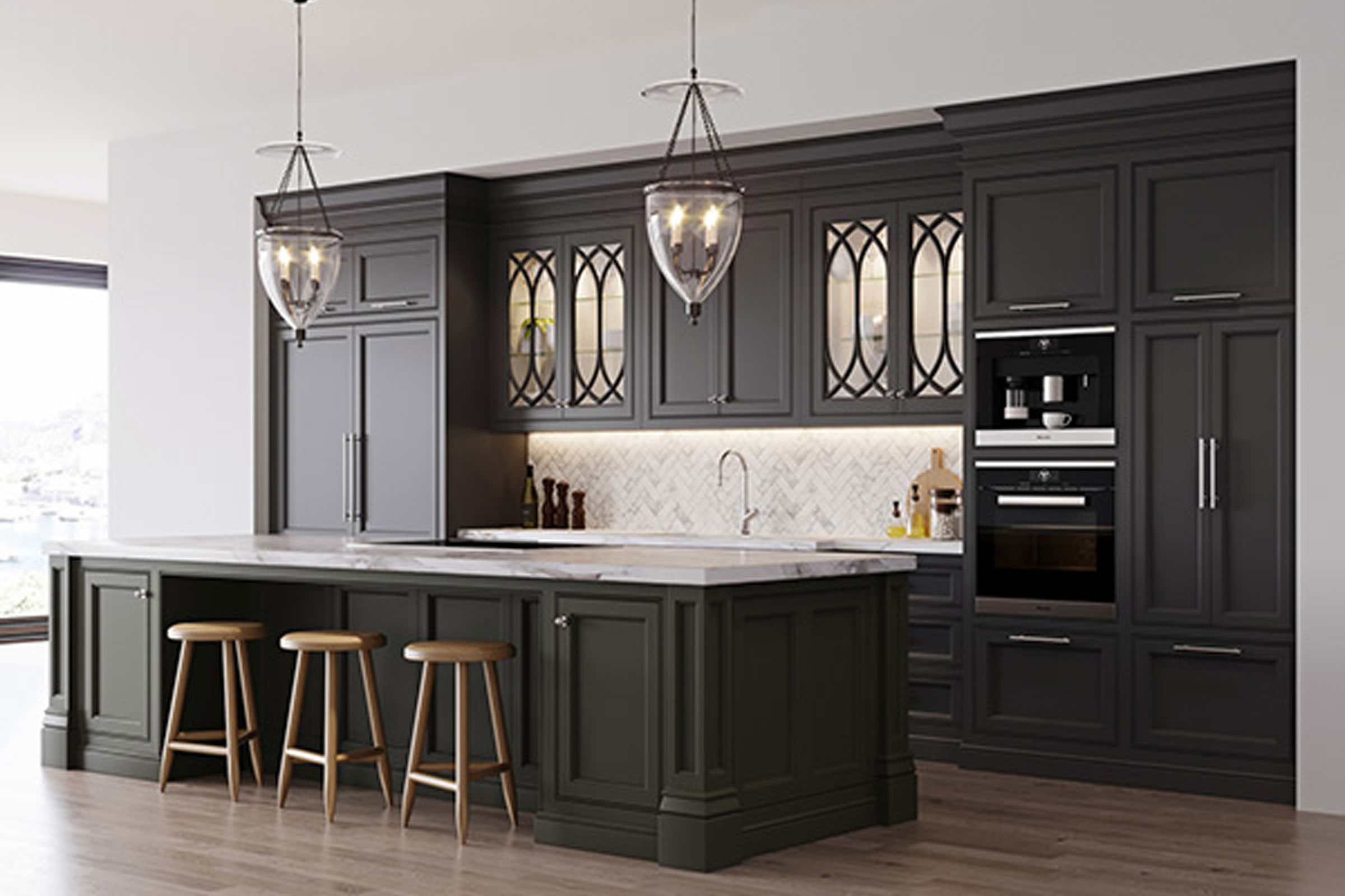 Αυτή η κουζίνα περικλείει τη ρουστίκ γοητεία της εξοχής, ενώ αγκαλιάζει μια σύγχρονη πινελιά με τη χρήση κομψών μαύρων στοιχείων, σκελετών από γυάλινες πόρτες και προσεγμένες λεπτομέρειες. Συνδυασμός κλασικού σχεδιασμού και μοντέρνων ευαισθησιών δημιουργεί έναν μαγευτικό χώρο που είναι τόσο φιλόξενος όσο και τολμηρός.