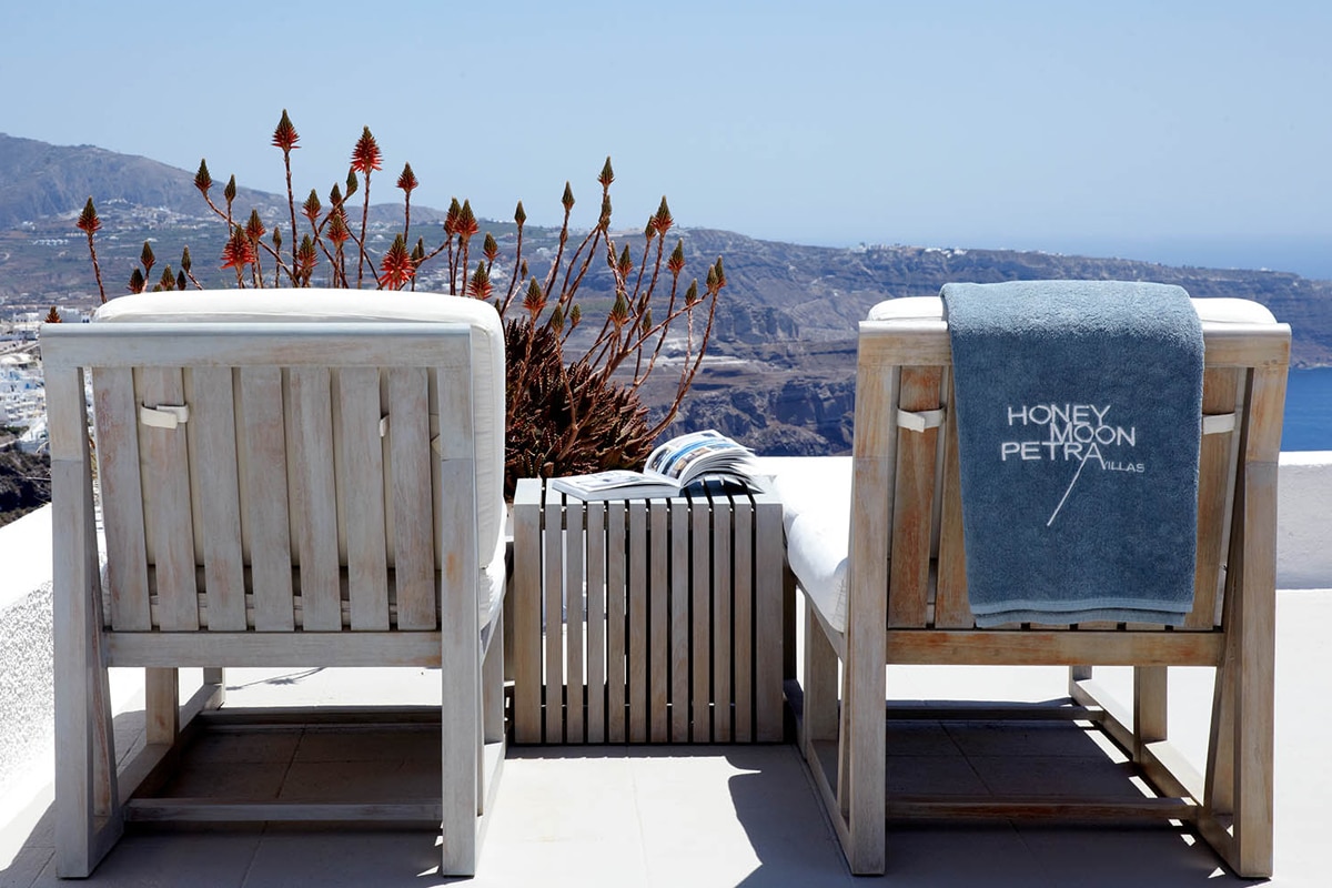 Το 5* ξενοδοχείο HONEYMOON PETRA VILLAS βρίσκεται στην περιοχή Ημεροβίγλι της Σαντορίνης και έχει πανοραμική θέα στο ηφαίστειο.
