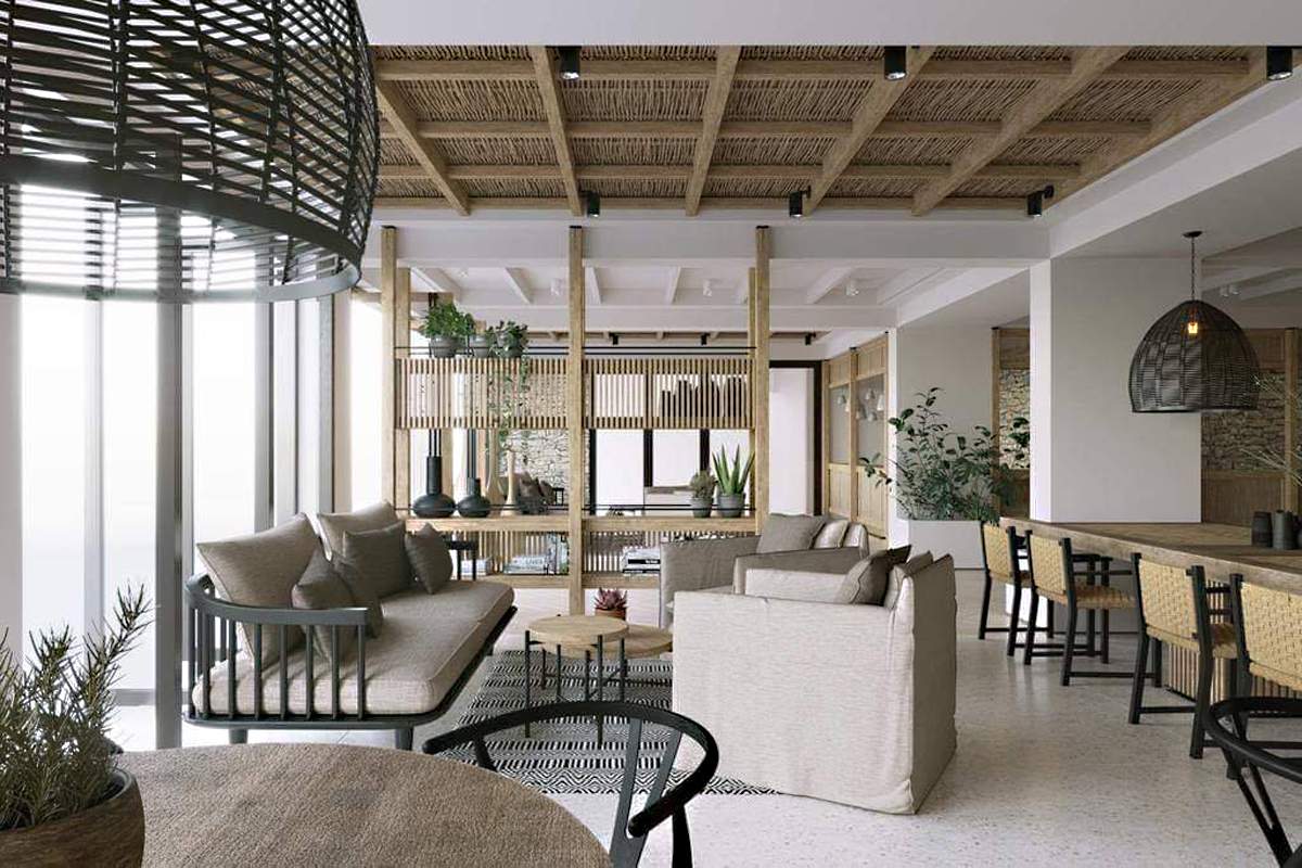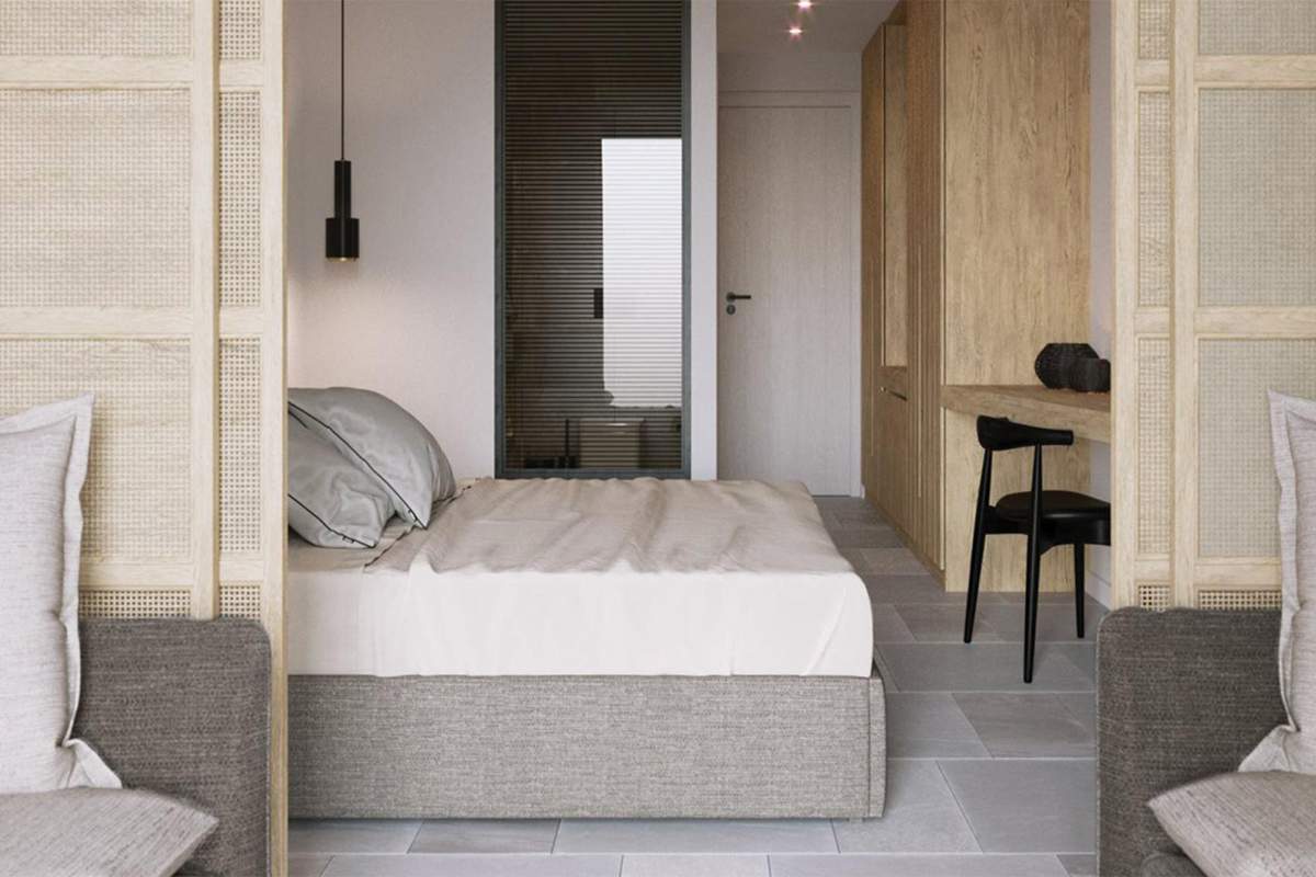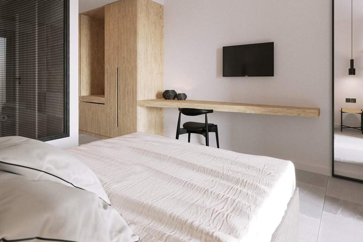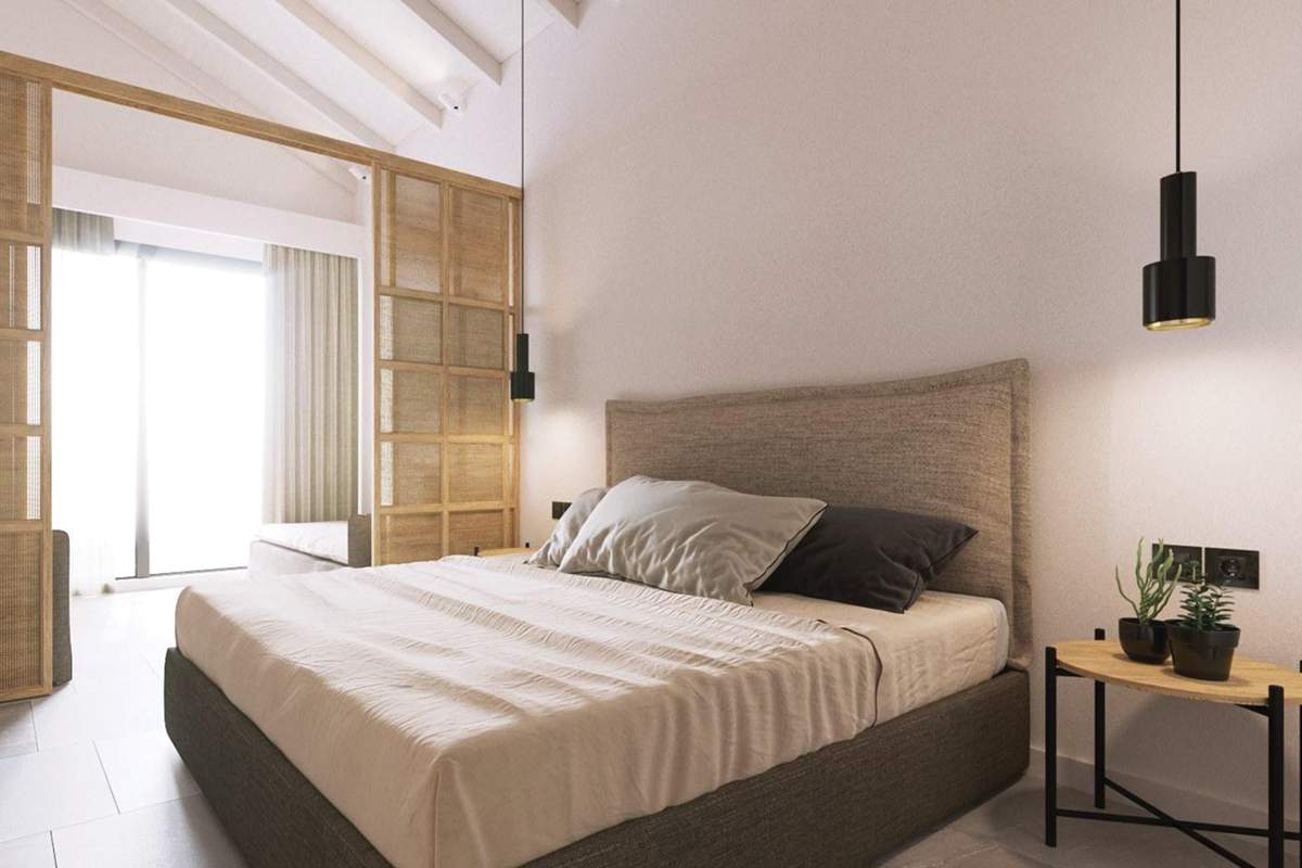Τα μοντέρνας αρχιτεκτονικής δωμάτια έχουν έπιπλα γήινων χρωμάτων που δημιουργούν μια ξεχωριστή ατμόσφαιρα.