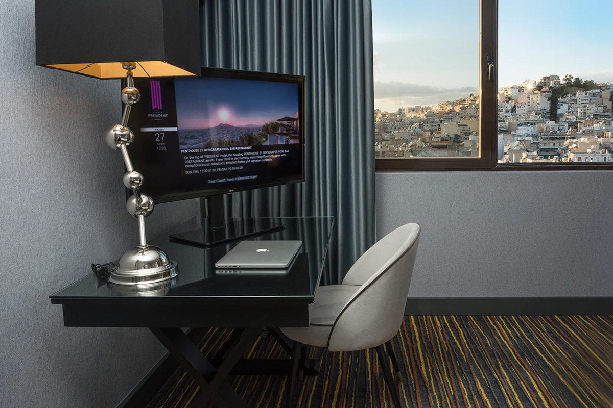 To President Hotel Athens εμπιστεύτηκε την GK MOBILΙ ώστε να δημιουργήσει δωμάτια άνετα, ευρύχωρα και κομψά έπιπλα.
