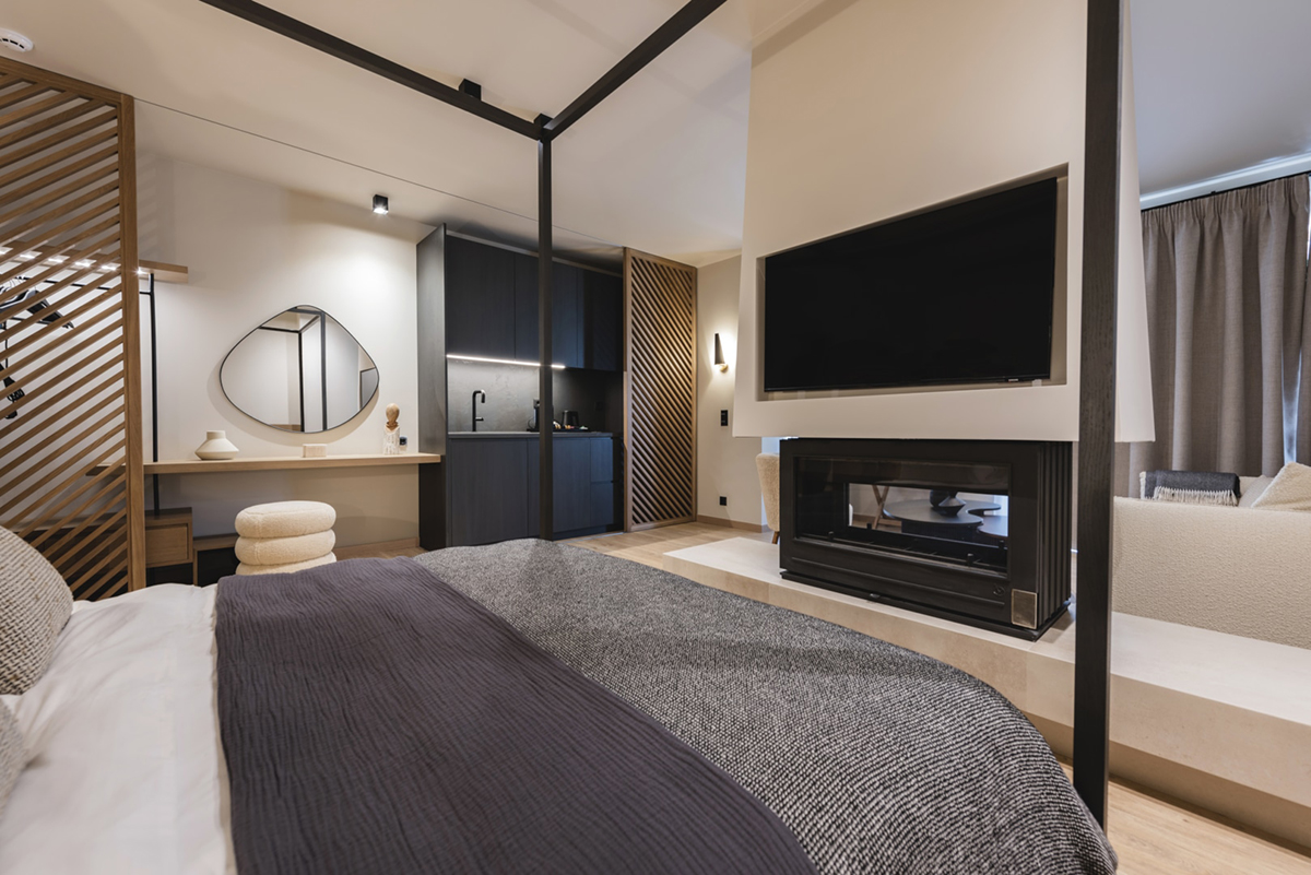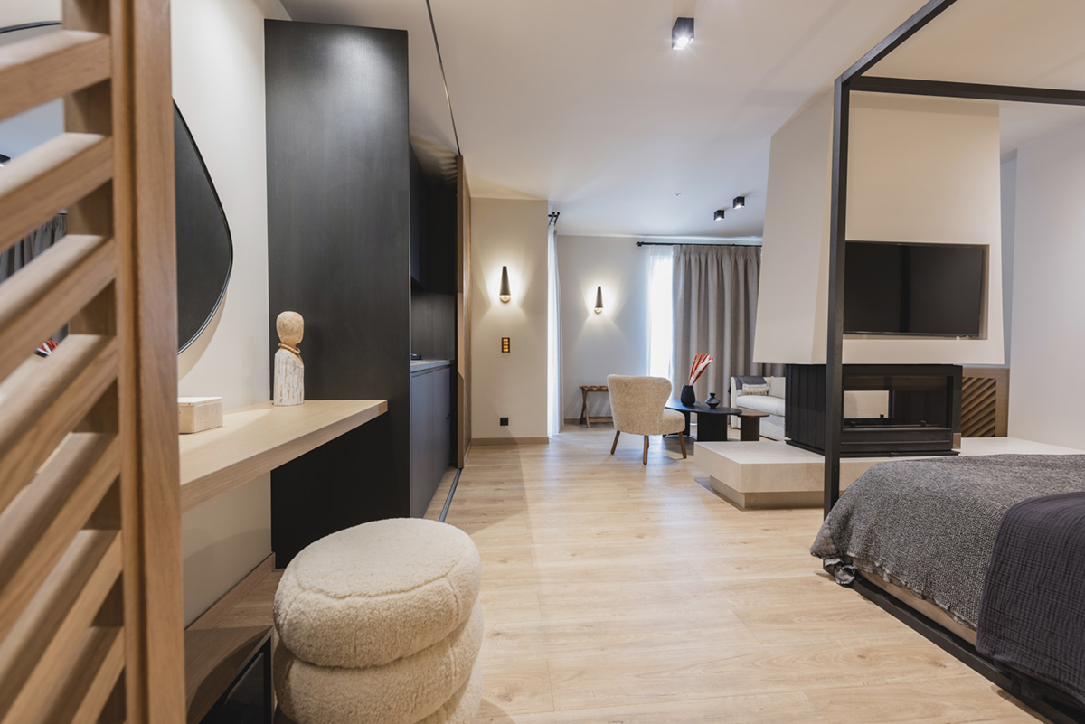 Η GK Mobili ανέλαβε και ολοκλήρωσε με επιτυχία την συνολική επίπλωση και τις ειδικές ξύλινες κατασκευές για το boutique ξενοδοχείο Revi Mountain Resort, ένα πολυτελές ορεινό καταφύγιο στα Καλάβρυτα που ενσαρκώνει την κομψότητα και την τεχνολογία αιχμής. Σχεδιασμένο με minimal αισθητική, χαρακτηρίζεται από τις καθαρές γραμμές και την λεπτή, εκλεπτυσμένη διακόσμησή του, δημιουργώντας μια ατμόσφαιρα ηρεμίας και φινέτσας.