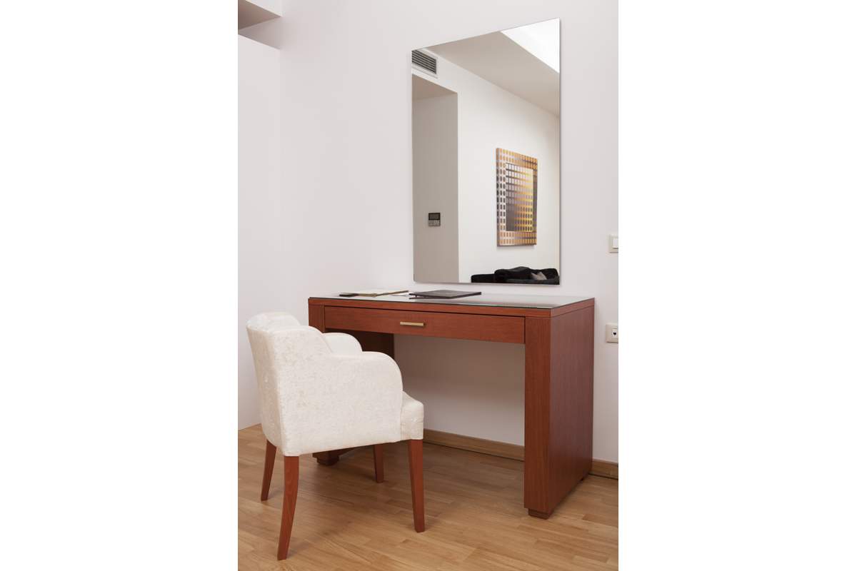 Παρέχει δωμάτια ευρύχωρα με ξύλινα κομψά έπιπλα σκούρων τόνων που δημιουργούν αντίθεση και ξεχωρίζουν στους ανοιχτόχρωμους χώρους του.