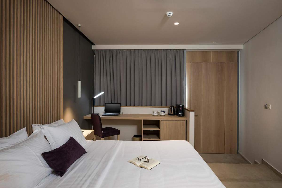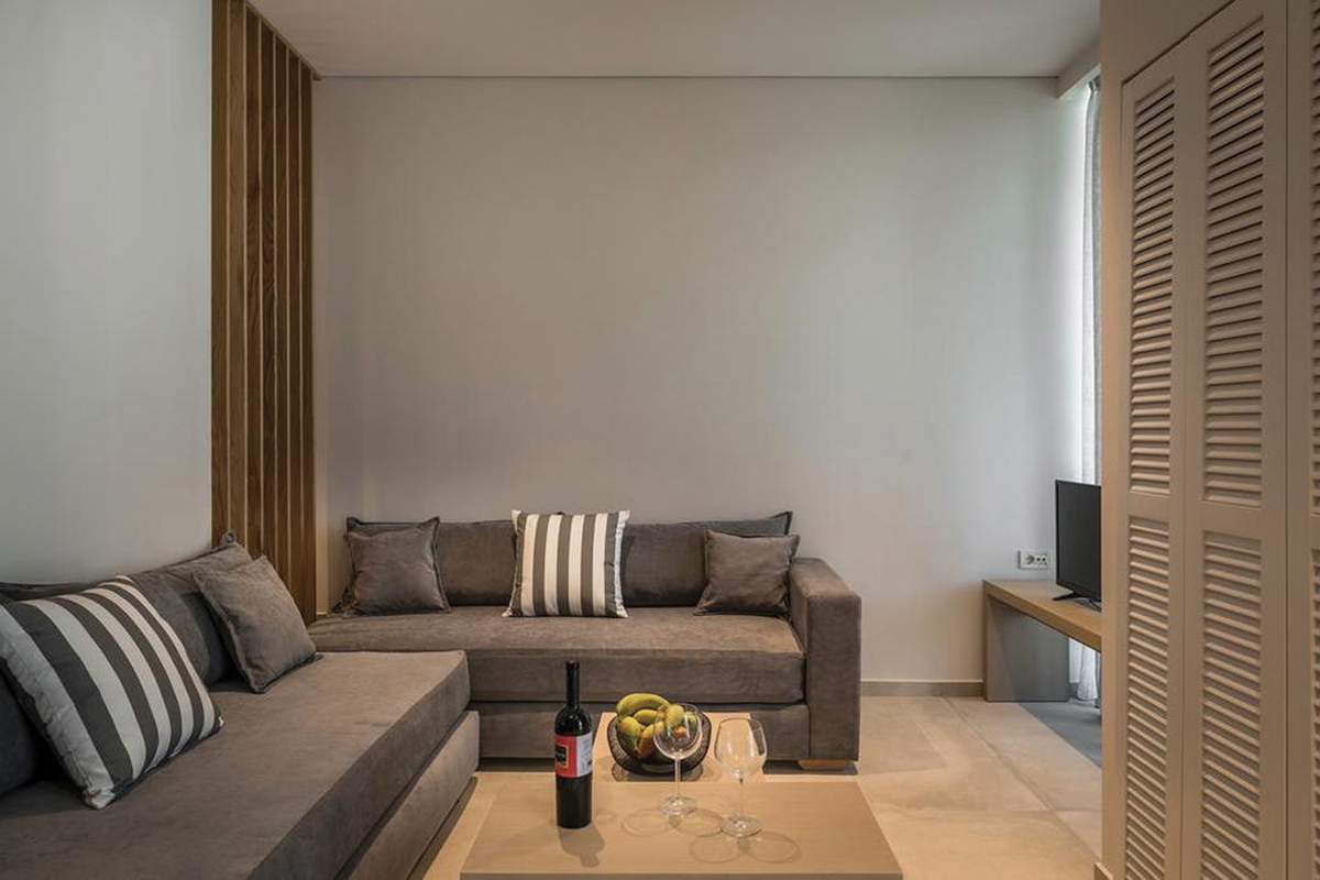 Το μοντέρνο και ανάλαφρο στυλ των δωματίων και η μινιμαλιστική αισθητική τους δημιουργούν ένα χαλαρωτικό περιβάλλον. Τα έπιπλα είναι μοναδικής σχεδίασης σε μπεζ και γκρι αποχρώσεις.