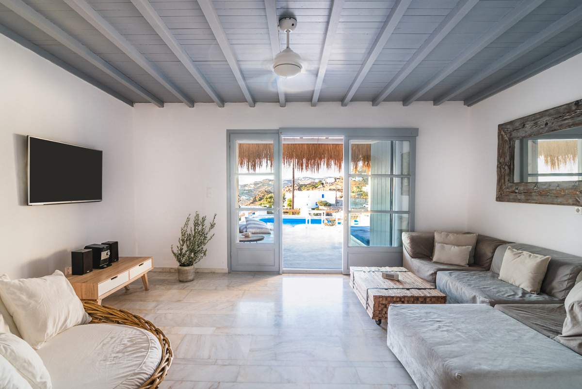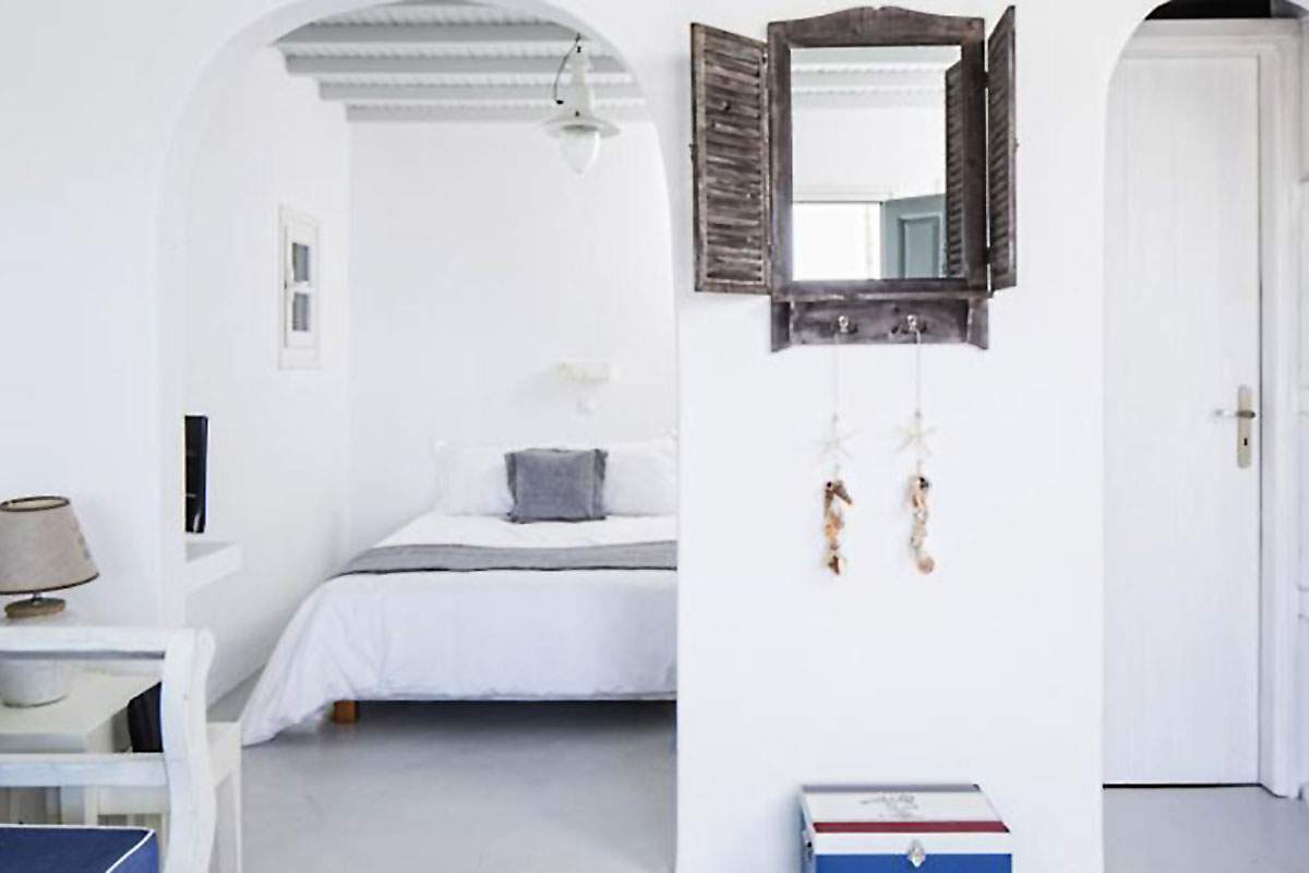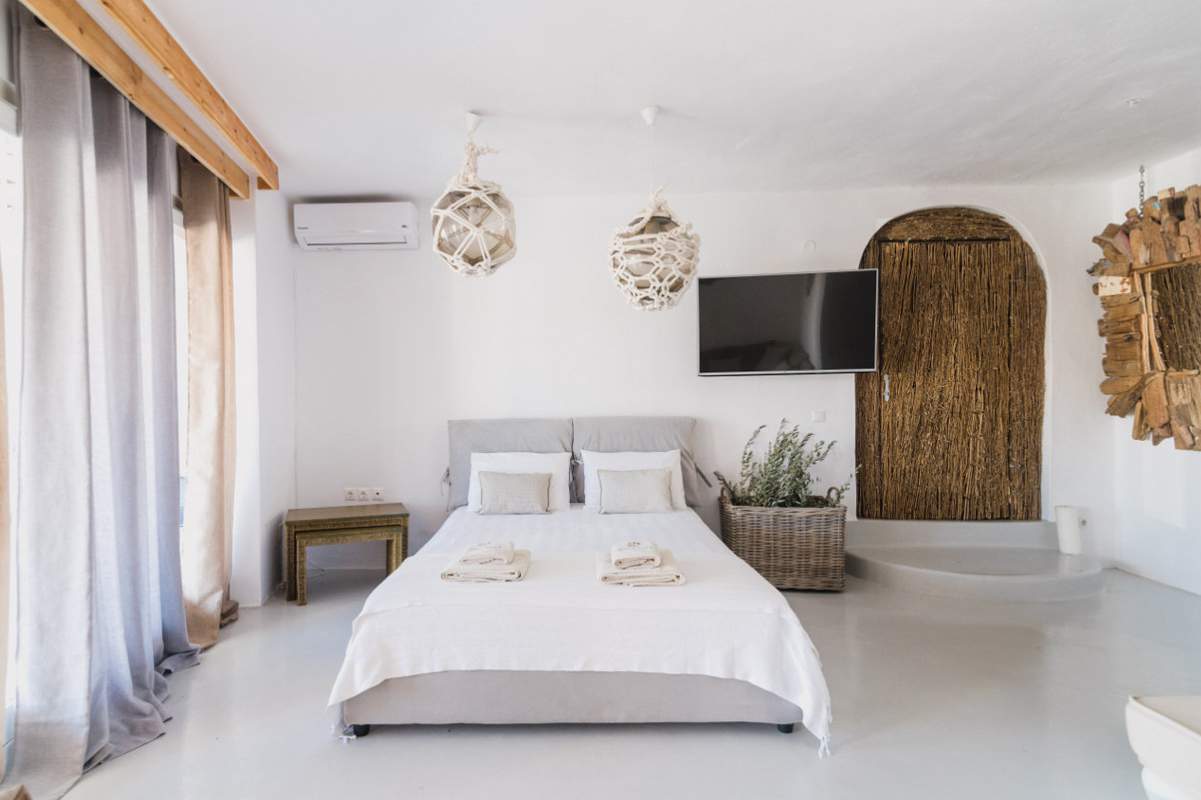 Είναι χτισμένες σε παραδοσιακό κυκλαδίτικο στυλ με λευκούς εσωτερικούς χώρους. Τα σκουρόχρωμα ξύλινα έπιπλα της GK MOBILI προσδίδουν φινέτσα και ολοκληρώνουν την εικόνα της πολυτέλειας.