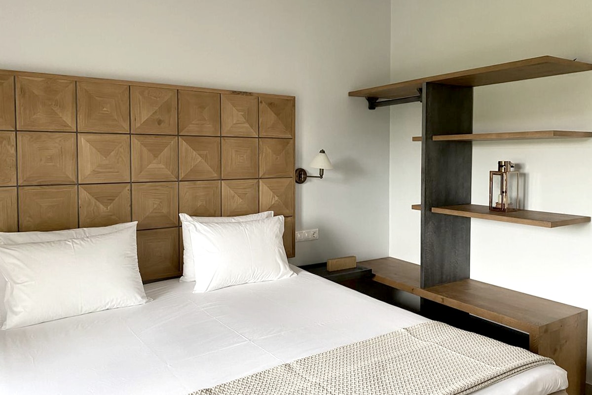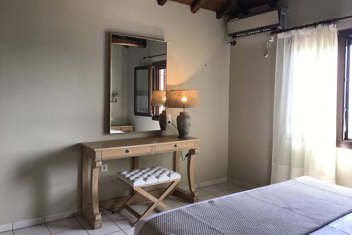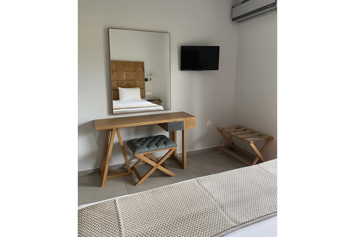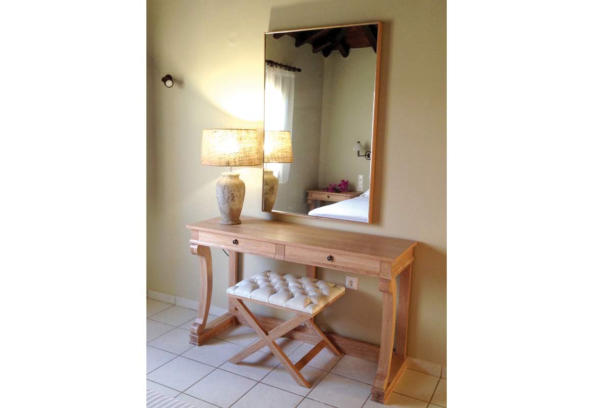Τα studios και τα διαμερίσματα είναι άρτια εξοπλισμένα με νεοκλασικά ξύλινα έπιπλα της GK MOBILI.